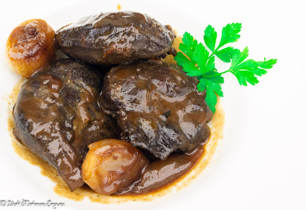 Unir la salsa con las carrilleras y dar un hervor suave. Mientras va hirviendo añadir unas rodajitas de beurre manié que le añadirá brillo y untuosidad a la salsa.